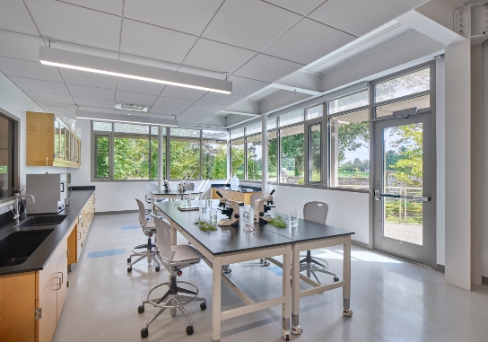 Phase II of NDA’s 2016 Campus Master Plan includes the construction of a state-of-the-art Center for STEM Education which provides its students and faculty with an innovative learning environment in the areas of science, technology, engineering, and mathematics. The Center has technology enabled active learning (TEAL) environments that include eight science laboratories, three lab prep rooms, eight mathematics classrooms, a design thinking and entrepreneurship classroom, and labs dedicated to design and innovation, robotics, and coding. The Center links to an existing Rose Garden, retaining the original stone walls, while shaping a new outdoor teaching and learning space for environmental studies.