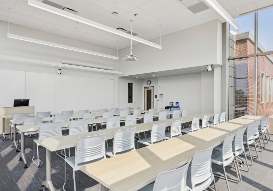 Dynamic academic spaces include eight smart classrooms, a Data Lab, a lab with 12 Bloomberg terminals to monitor real-time financial data, and a 54-seat lecture hall.